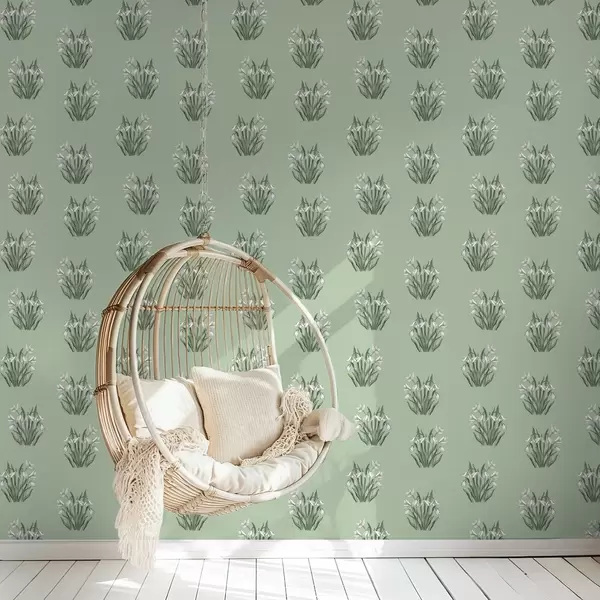 Tapetai Snieguolės su žaliais lapais ant švelnaus žalia fono Nr. a00651v4