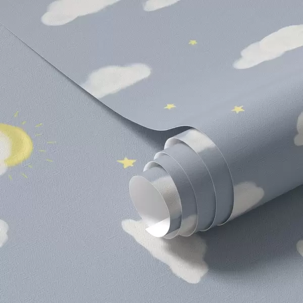 Tapetai Minkšti debesys, žvaigždės ir saulė mėlyname fone Nr. a00652