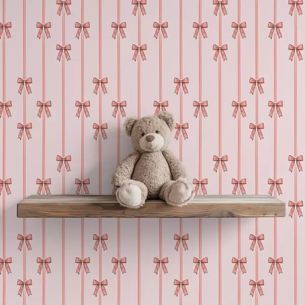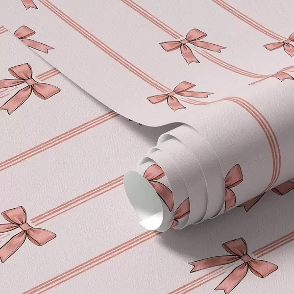 Tapetai Vertikalios juostelės su kaspinais, pudros rožinis fonas Nr. a00653v2