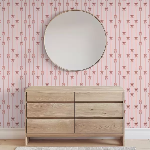 Tapetai Vertikalios juostelės su kaspinais, pudros rožinis fonas Nr. a00653v2