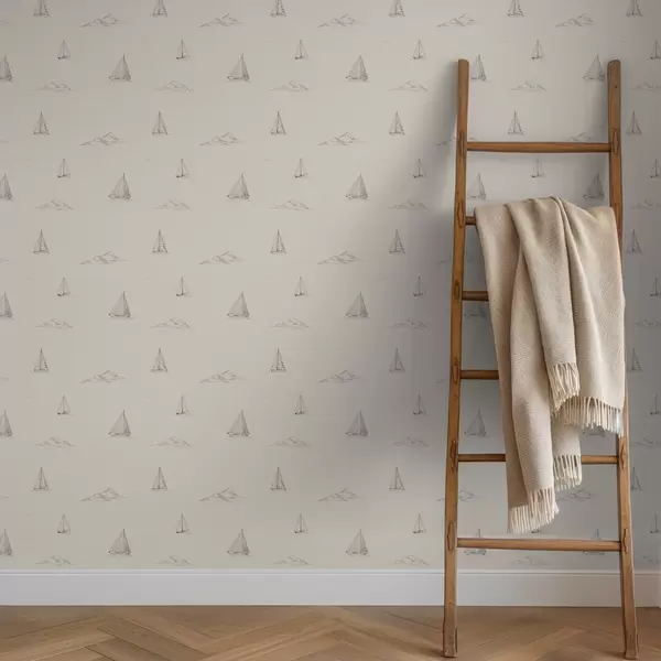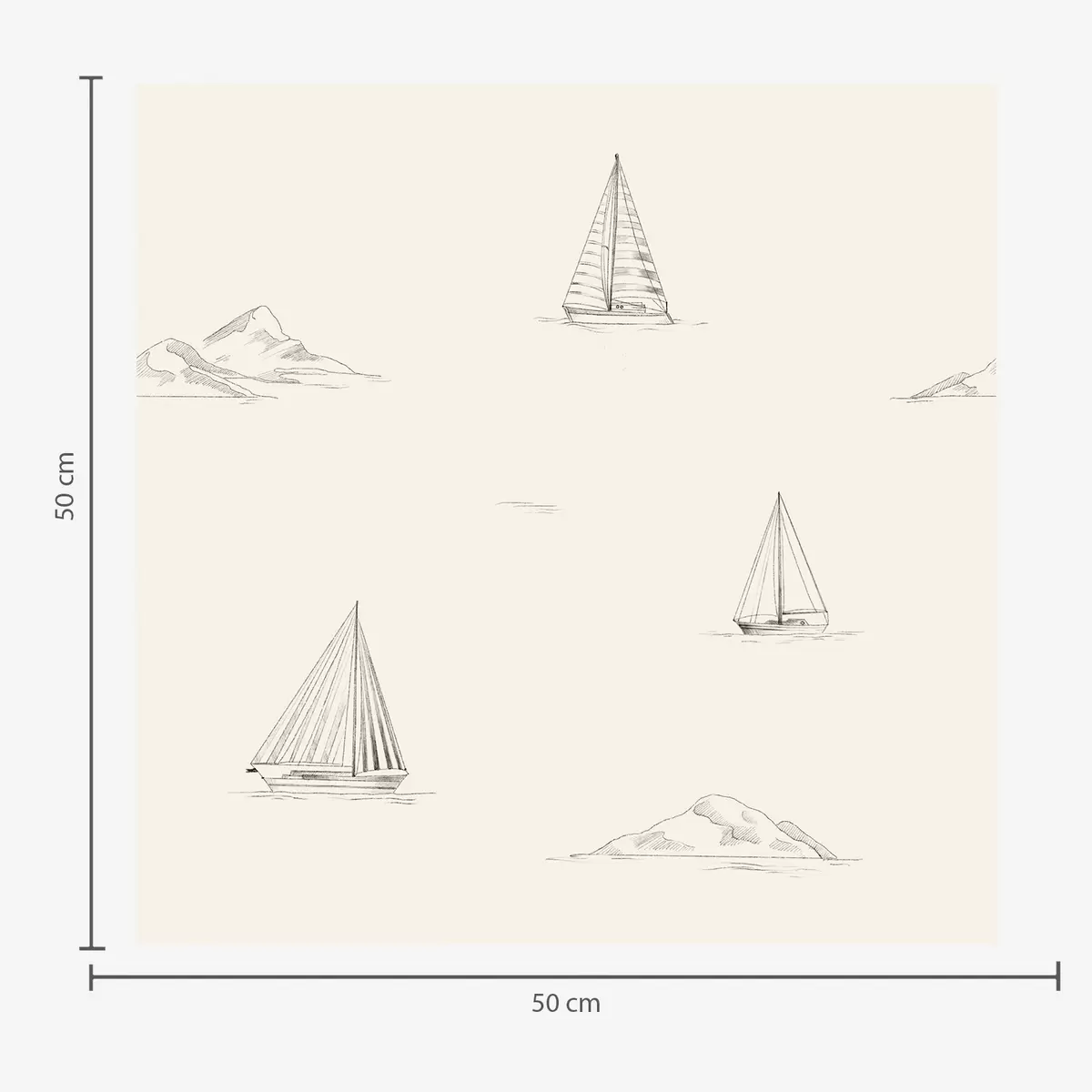 Tapetai Pieškite jachtas ir salas, šiltas kreminis fonas Nr. a00654v1