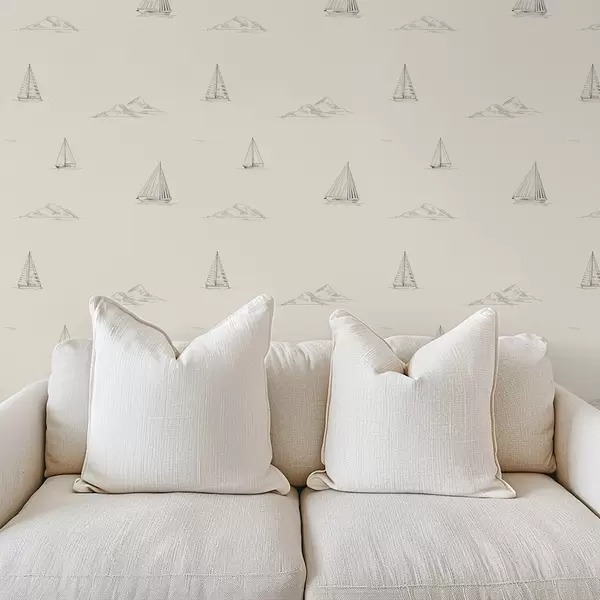 Tapetai Pieškite jachtas ir salas, šiltas kreminis fonas Nr. a00654v1