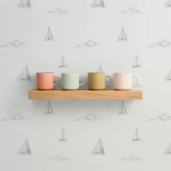 Tapetai Pieškite jachtas ir salas, šviesus fonas Nr. a00654v2