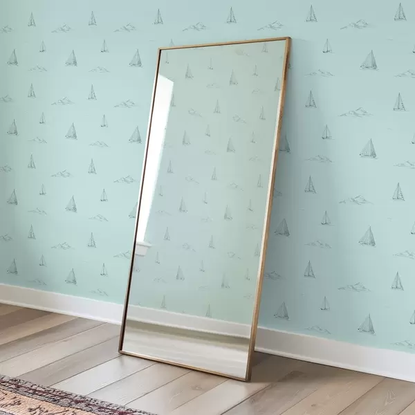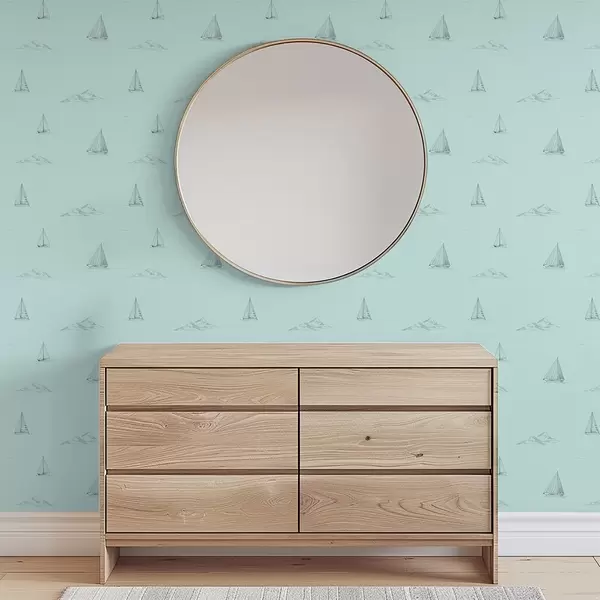 Tapetai Pieškite jachtas ir salas, mėtų žalios spalvos fone Nr. a00654v4