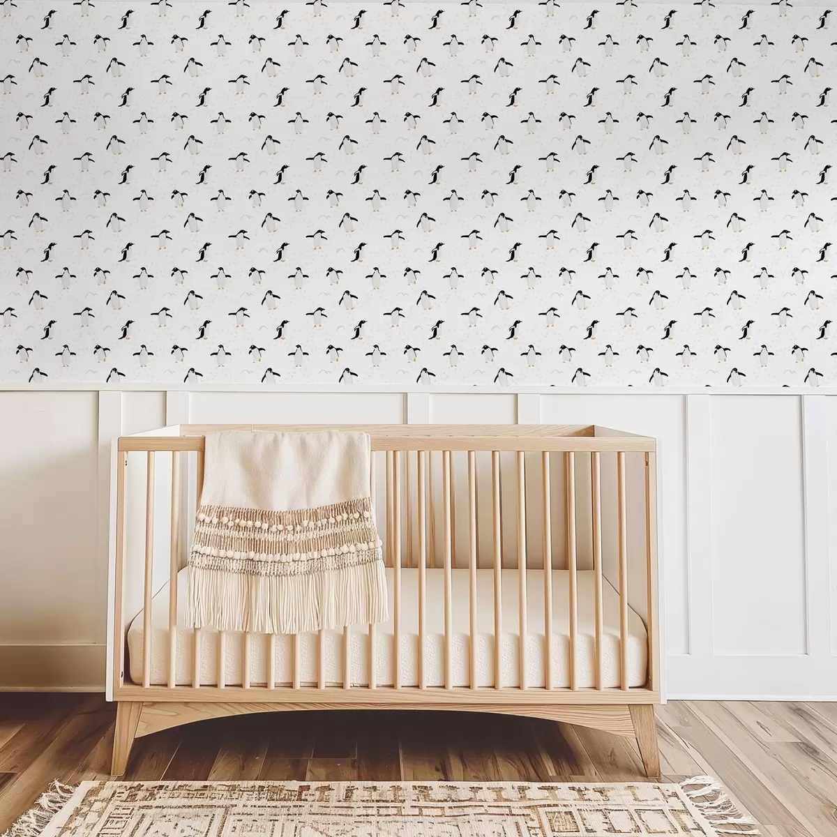 Tapetai Pingvinai ant balto fono su pėdsakais Nr. a00655v1