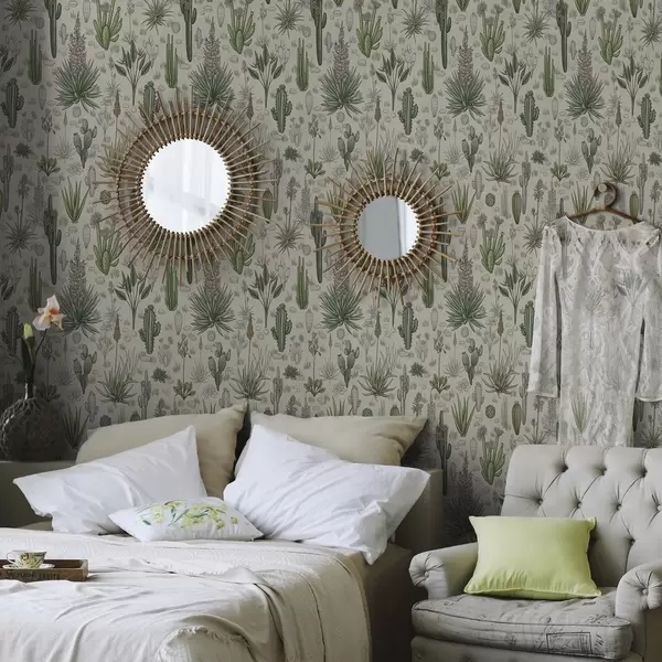 Tapetai Kaktusai ir sukulentai ant šilto fono, detalus spausdinimas Nr. a00666