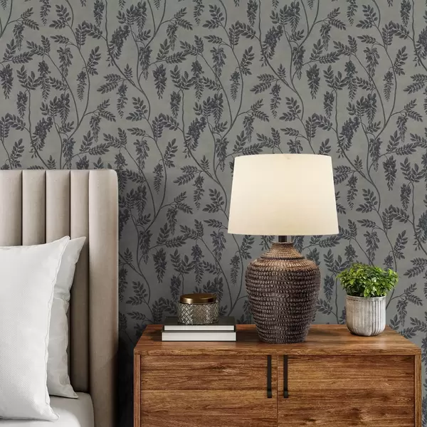Tapetai Šakos su tamsiomis gėlėmis ant pilkai-smėlio fono Nr. a00672