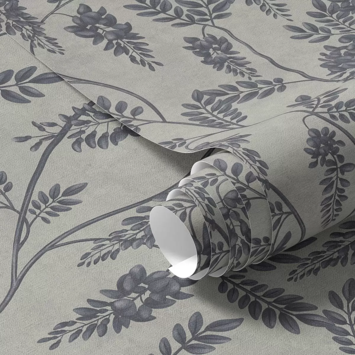Tapetai Šakos su tamsiomis gėlėmis ant pilkai-smėlio fono Nr. a00672