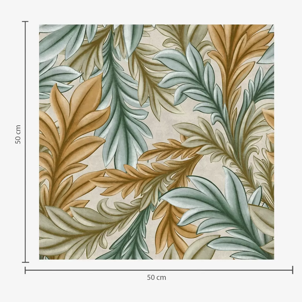 Tapetai Dekoratyviniai lapai šiltos ochros ir žalios spalvų paletės Nr. a00673