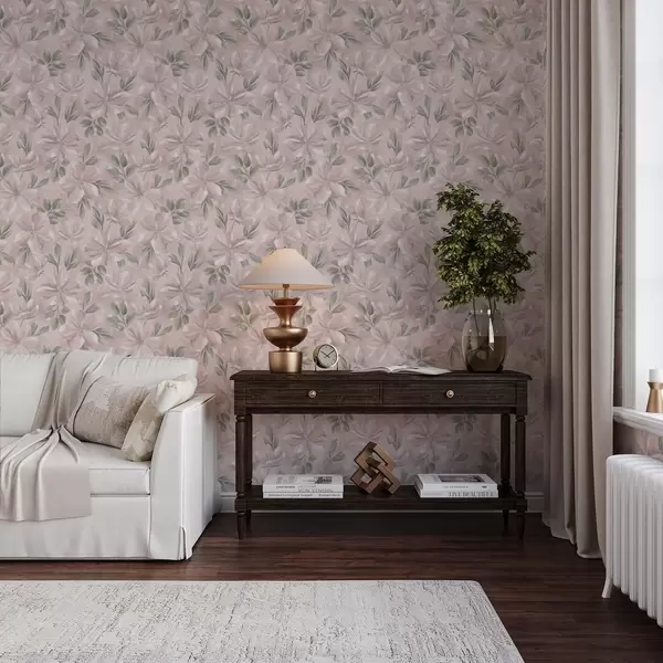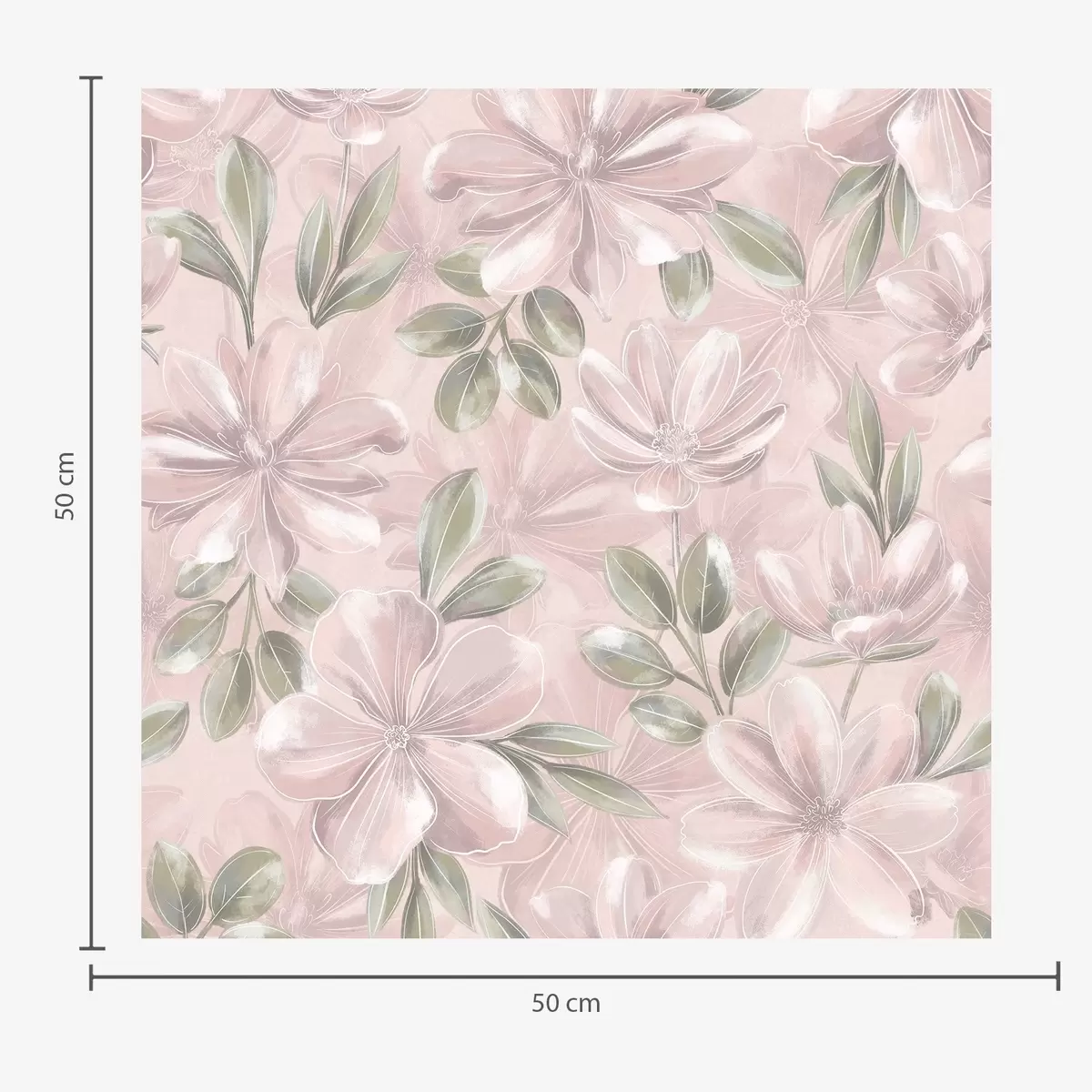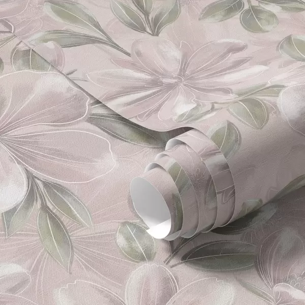 Tapetai Rožinės gėlės su subtiliais lapais ant švelnaus fono Nr. a00675