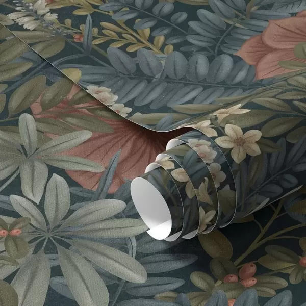 Tapetai Tamsus fonas su tankiais šiltais atspalviais žiedais ir lapais Nr. a00678