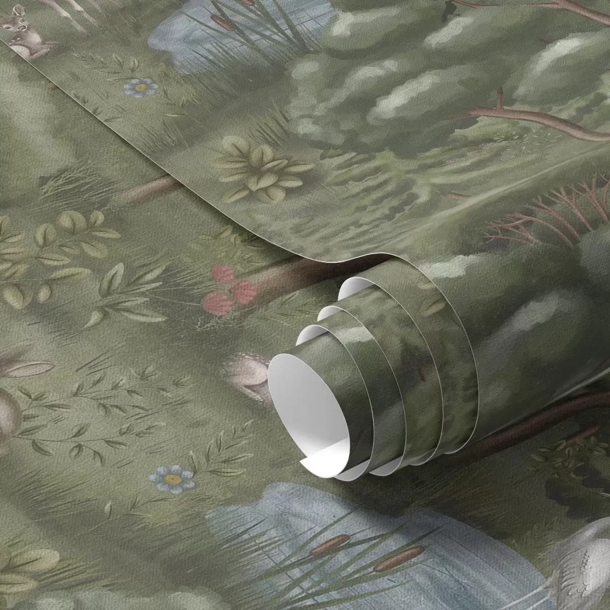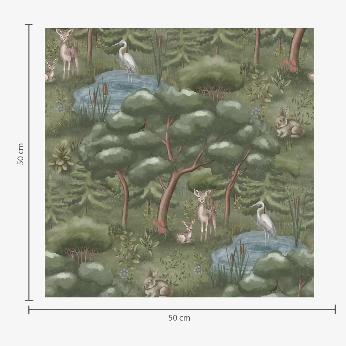 Tapetai Miško proskynė su elniukais, triušiais ir garniais Nr. a00680