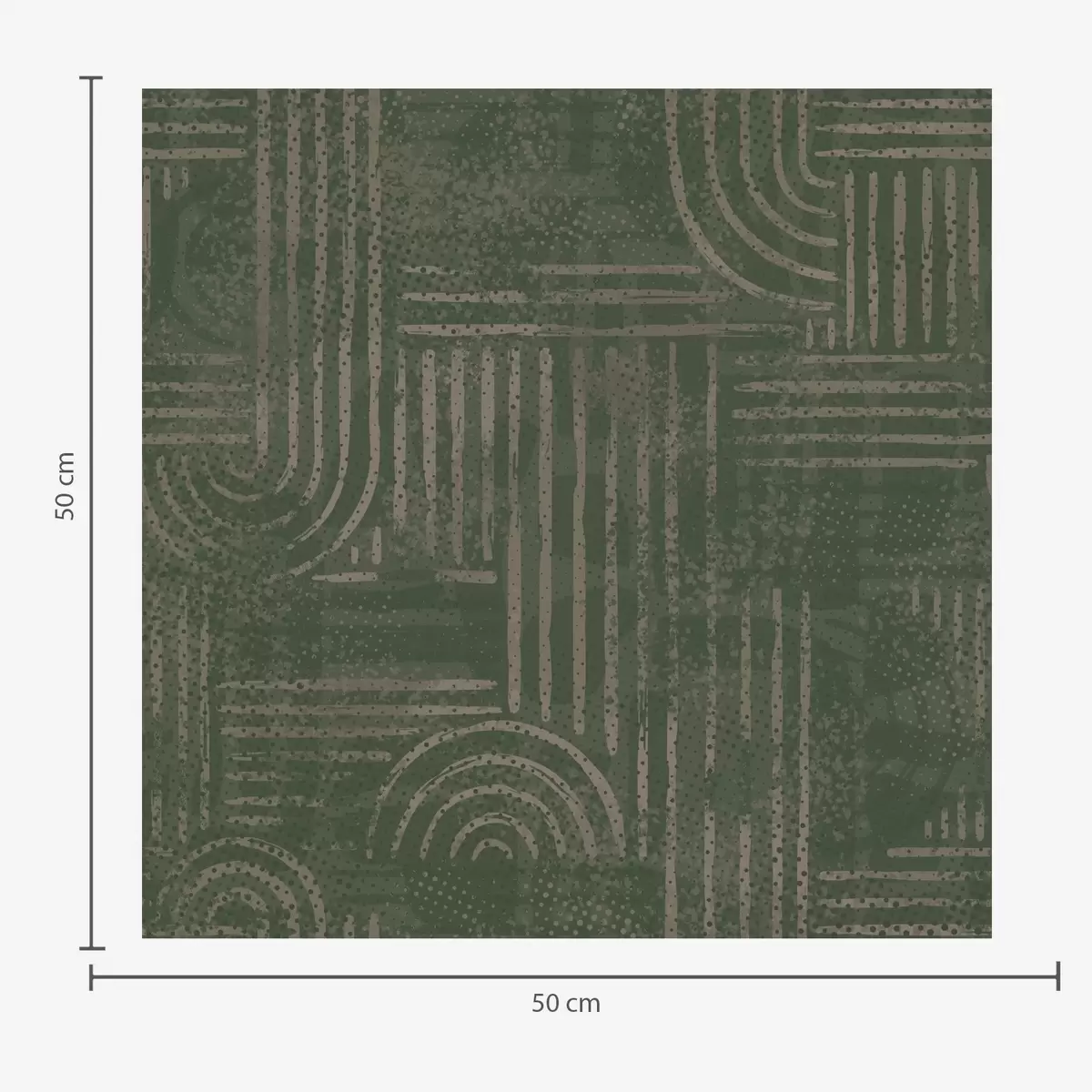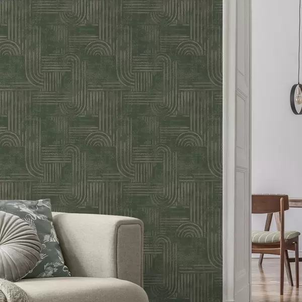Tapetai Geometrinis raštas su lankais žalios spalvos paletėje Nr. a00697