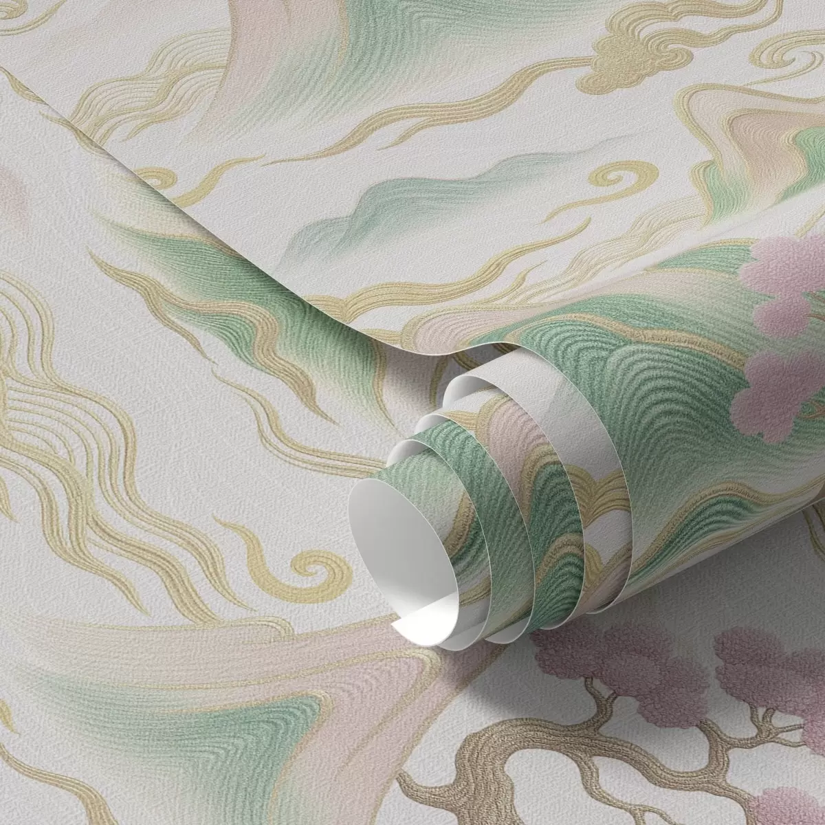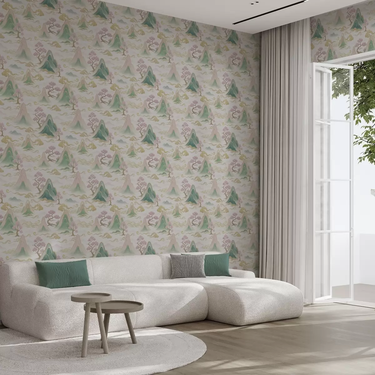 Tapetai Kalnai, debesys ir pušys rytietiško dekoratyvinio stiliaus Nr. a00703