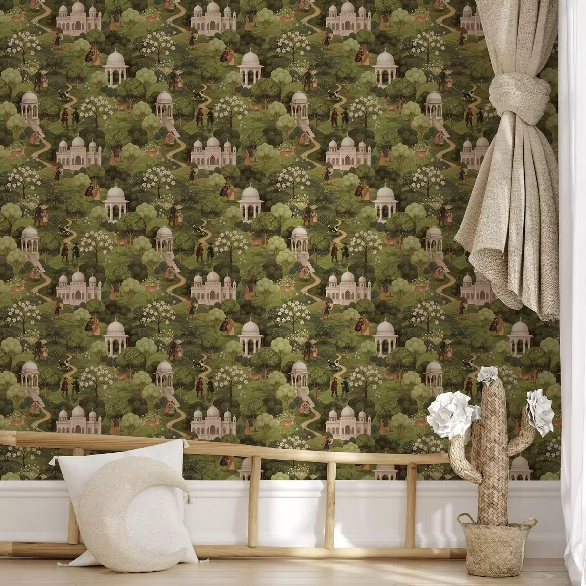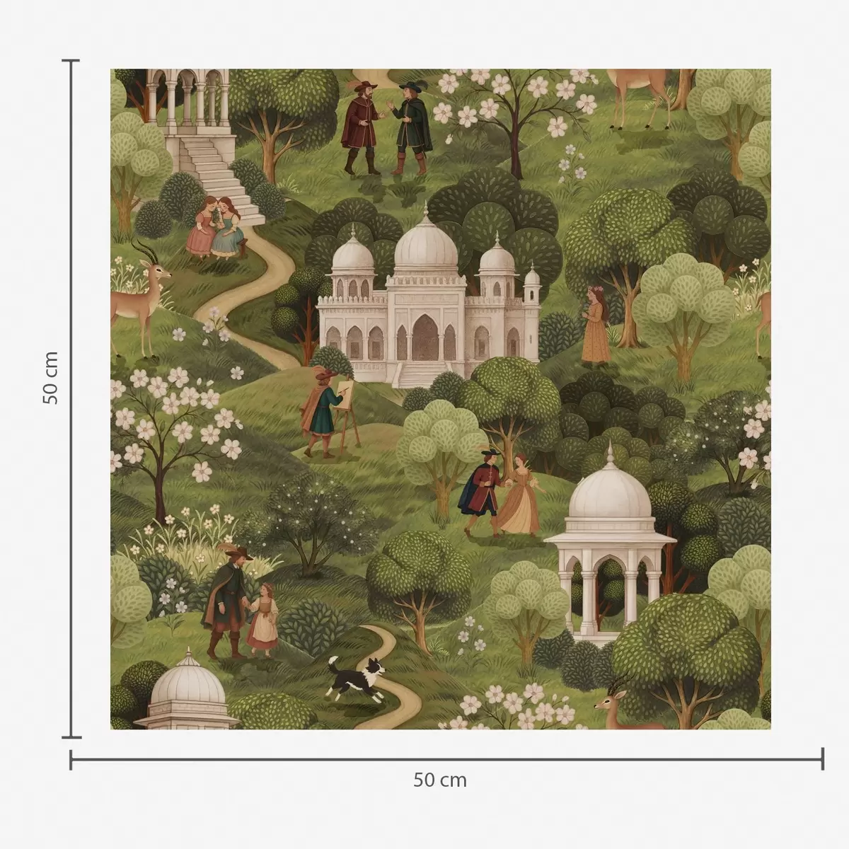 Tapetai Parko vaizdas su medžiais ir architektūra kraštovaizdžio stiliumi Nr. a00705