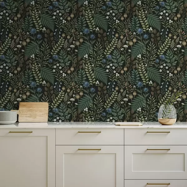 Tapetai Lauko žolės, uogos ir sėklos tamsiame fone Nr. a00706