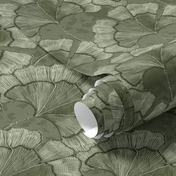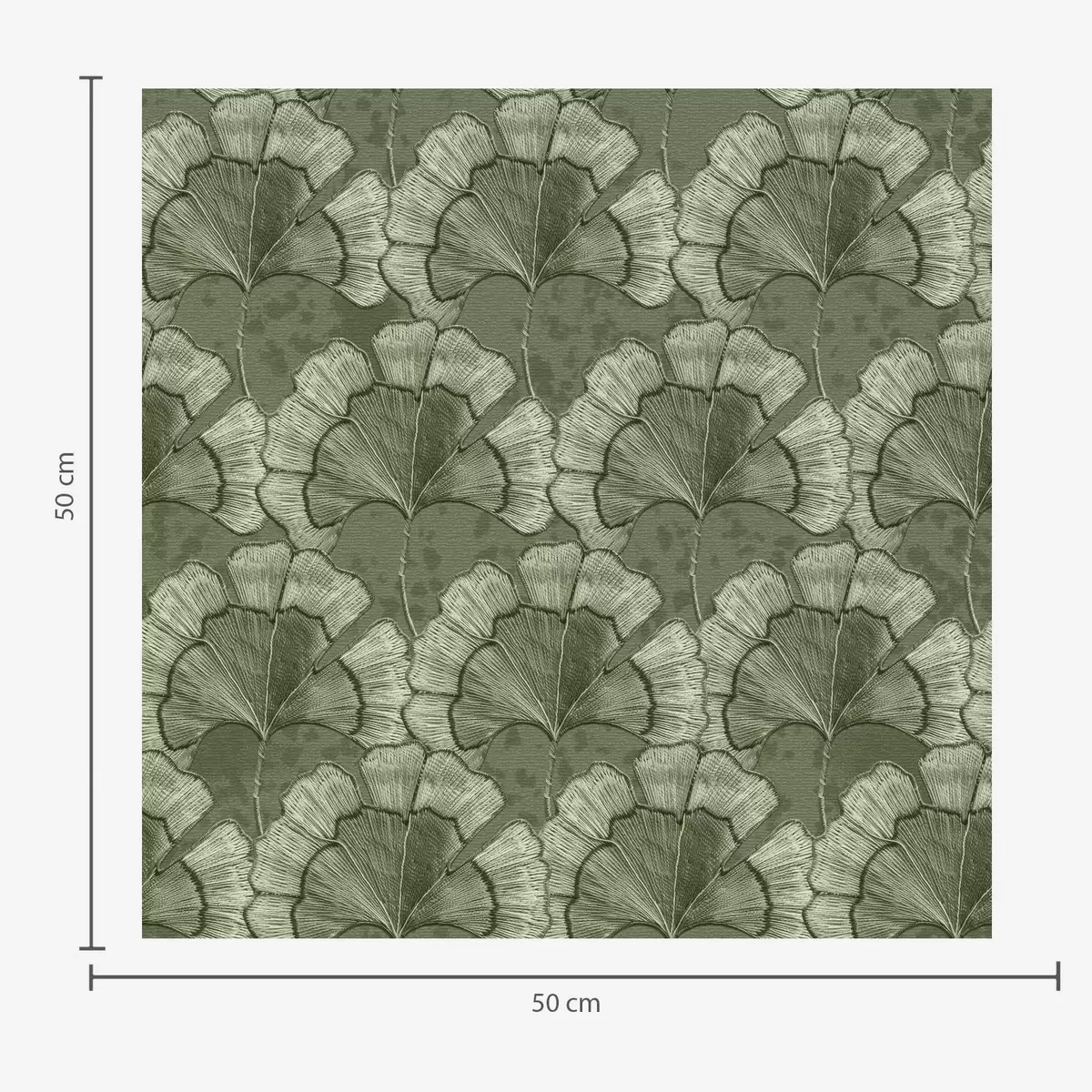 Tapetai Grafinis raštas su ginkgo medžiu šaltos žalios spalvos paletėje Nr. a00709