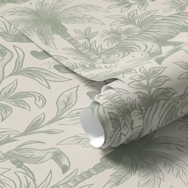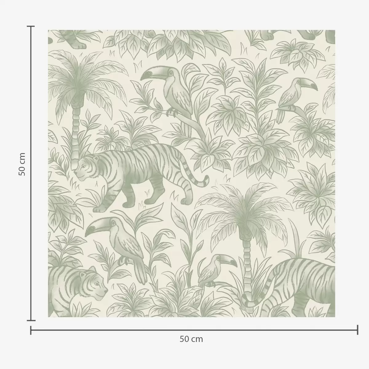 Tapetai Tigrai ir tropiniai paukščiai tarp palmių šviesiu fonu Nr. a00711