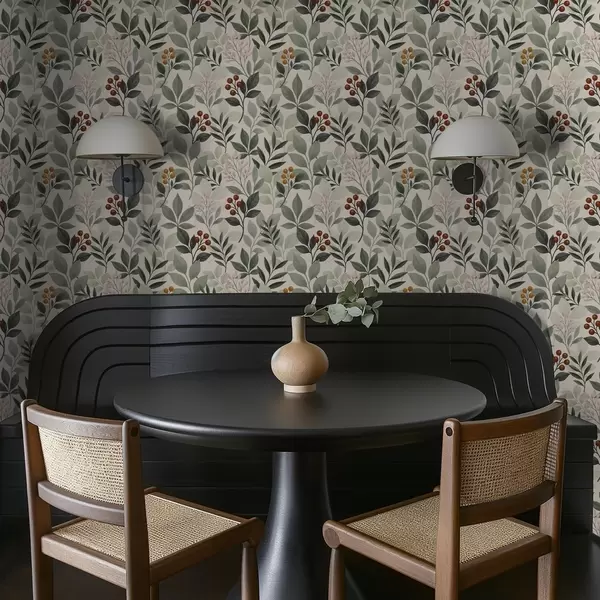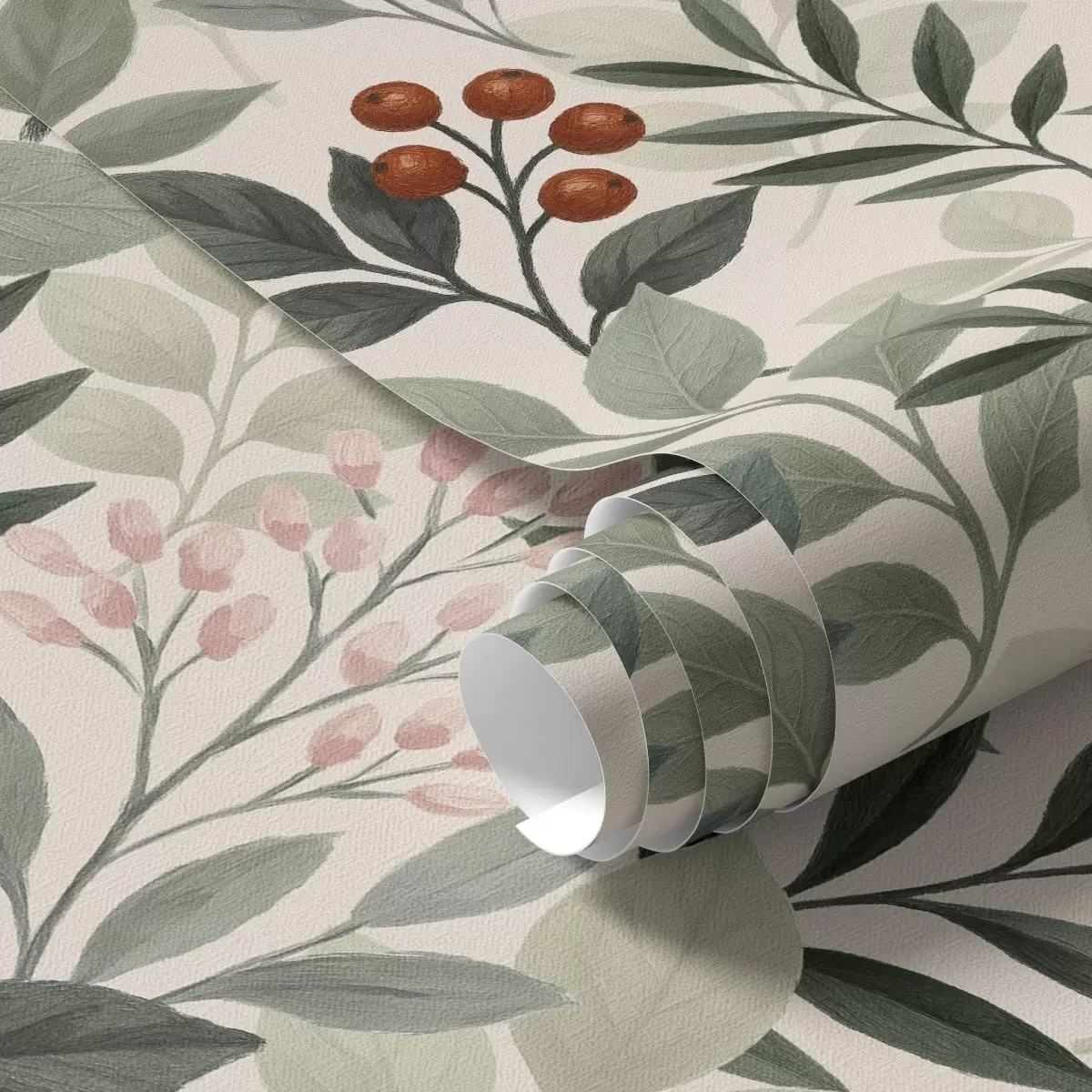Tapetai Lapai su uogomis, šviesus fonas Nr. a00713