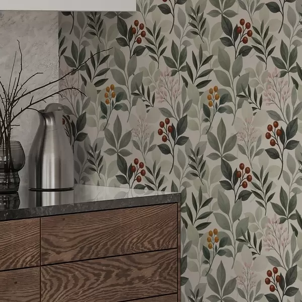 Tapetai Lapai su uogomis, šviesus fonas Nr. a00713