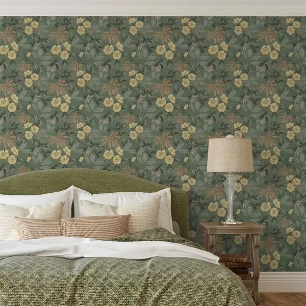 Tapetai Geltonos gėlės tarp žalių lapų tekstūros Nr. a00718