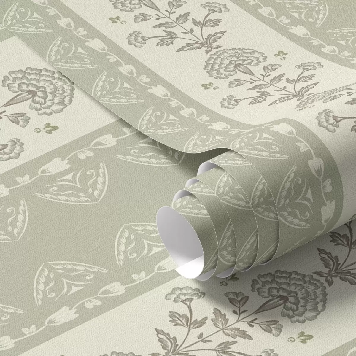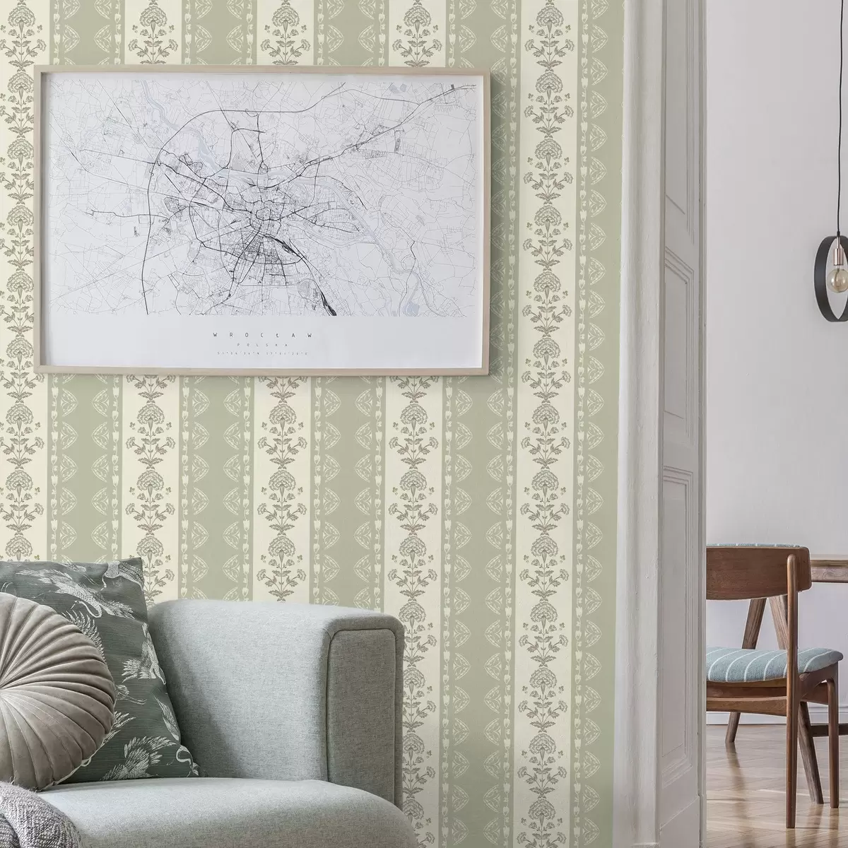 Tapetai Juostuotas ornamentas su gėlių kolonomis šalavijų atspalviais Nr. a00719