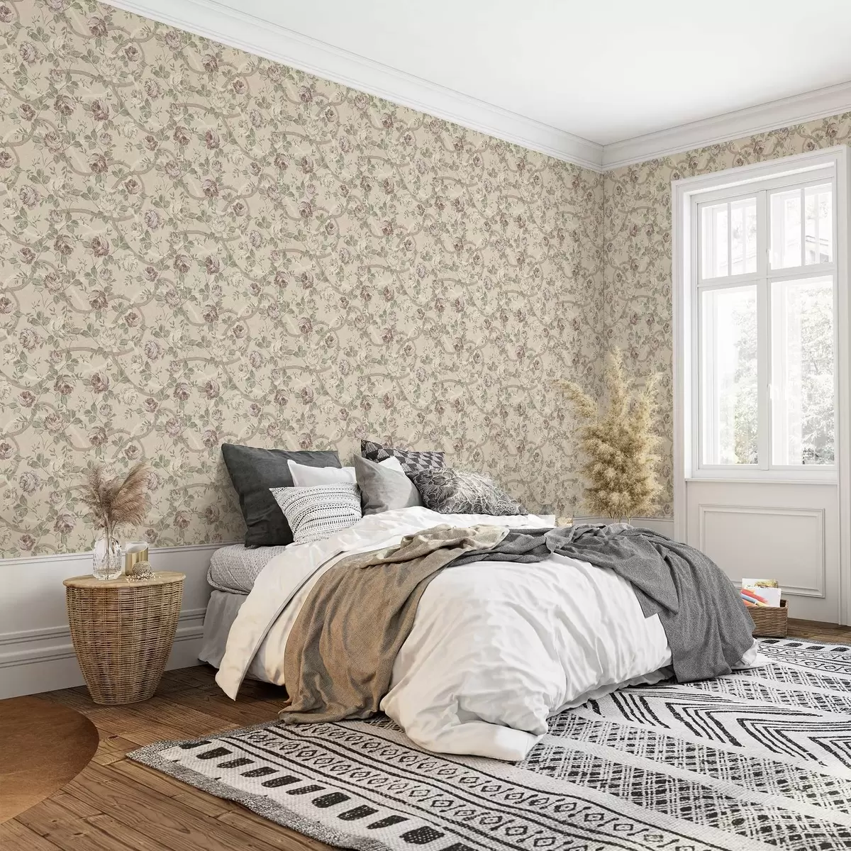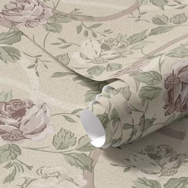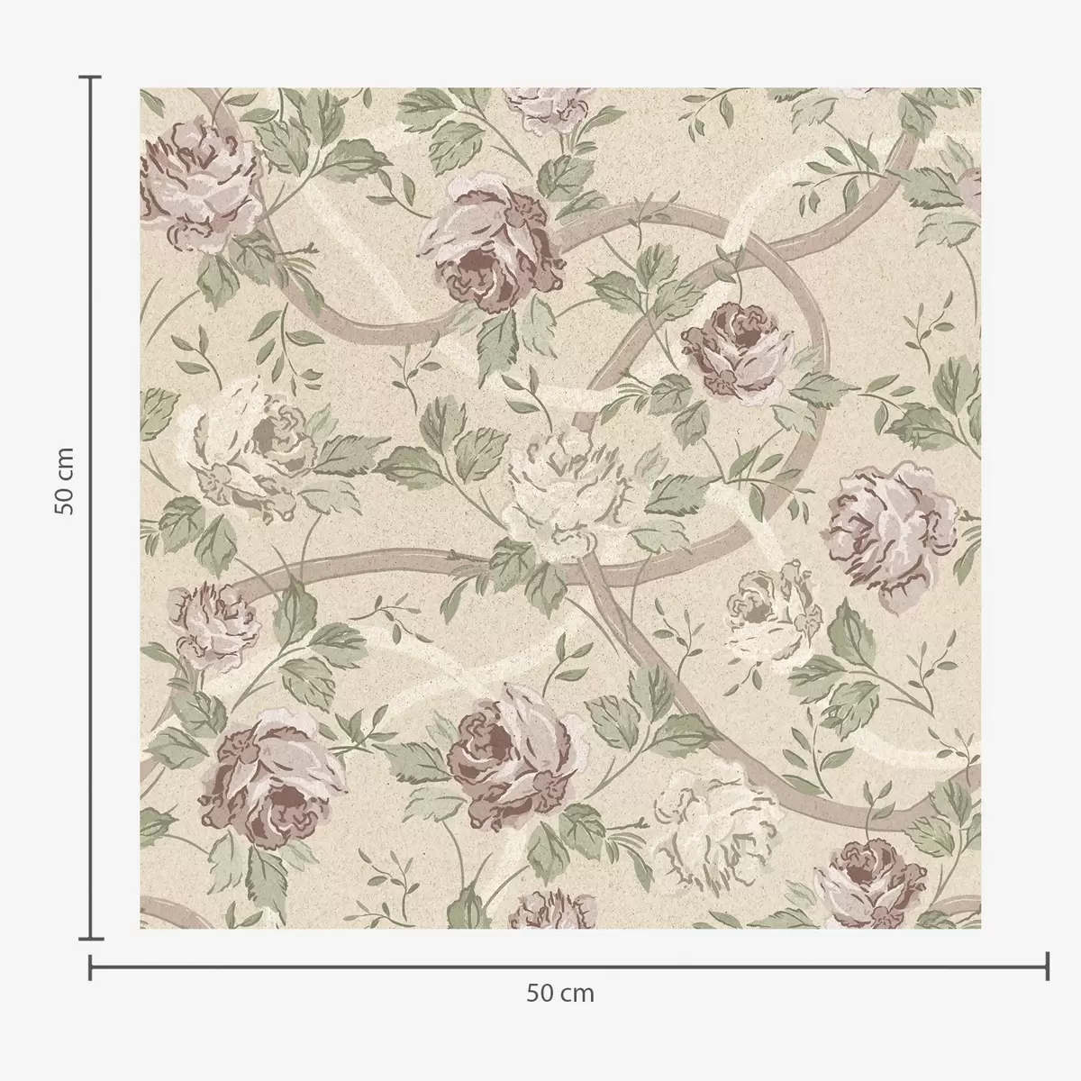 Tapetai Rožės su žaliais lapais ant šiltos smėlio spalvos pagrindo Nr. a00729