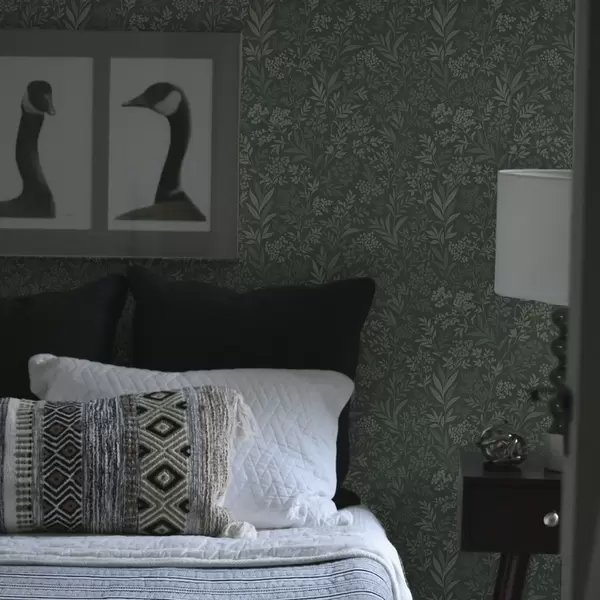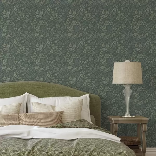 Tapetai Smaragdinės žolės ir uogos, subtilus botaninis raštas Nr. a00740