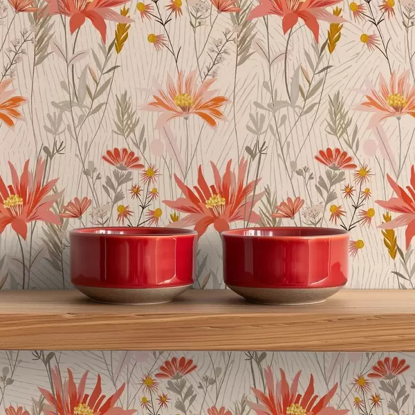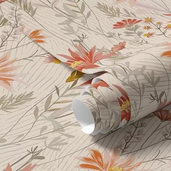 Tapetai Šiltų atspalvių lauko gėlės ant smėlio spalvos fono Nr. a00751