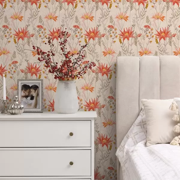 Tapetai Šiltų atspalvių lauko gėlės ant smėlio spalvos fono Nr. a00751