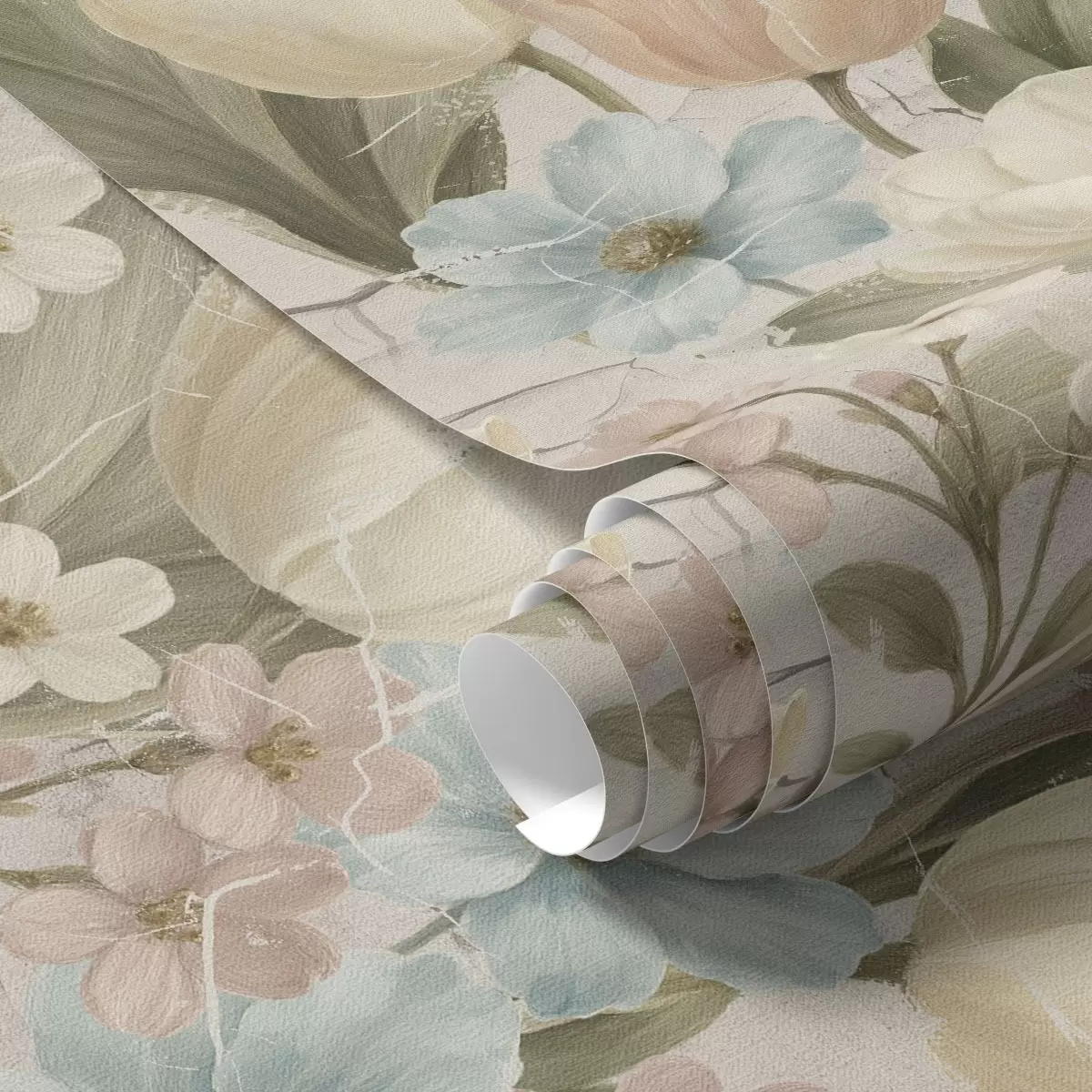 Tapetai Pastelinės tulpės ir gėlės ant šviesaus įtrūkusio fono a00756