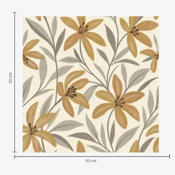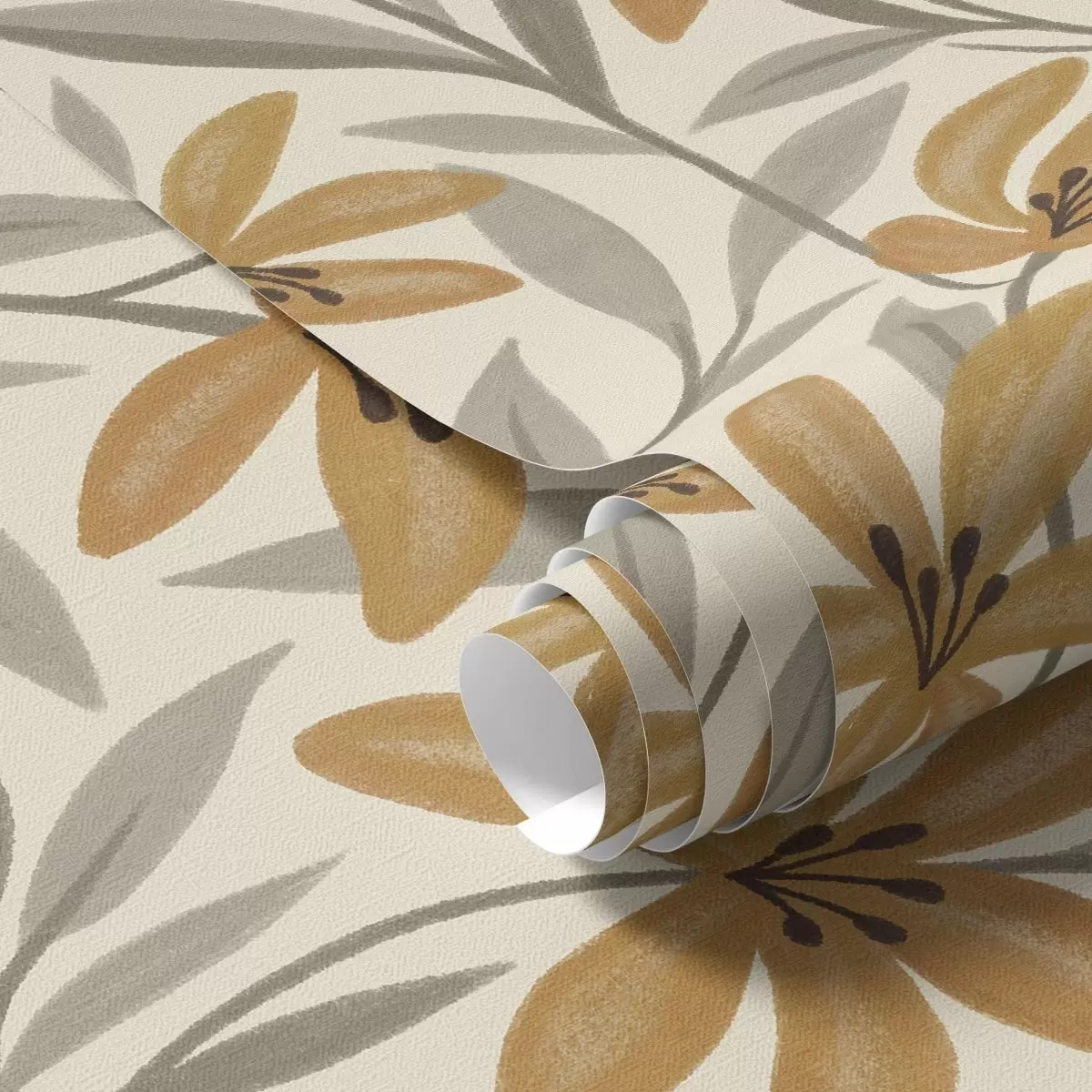 Tapetai Geltonos lelijos ir pilkai žali lapai šviesiu fonu Nr. a00757
