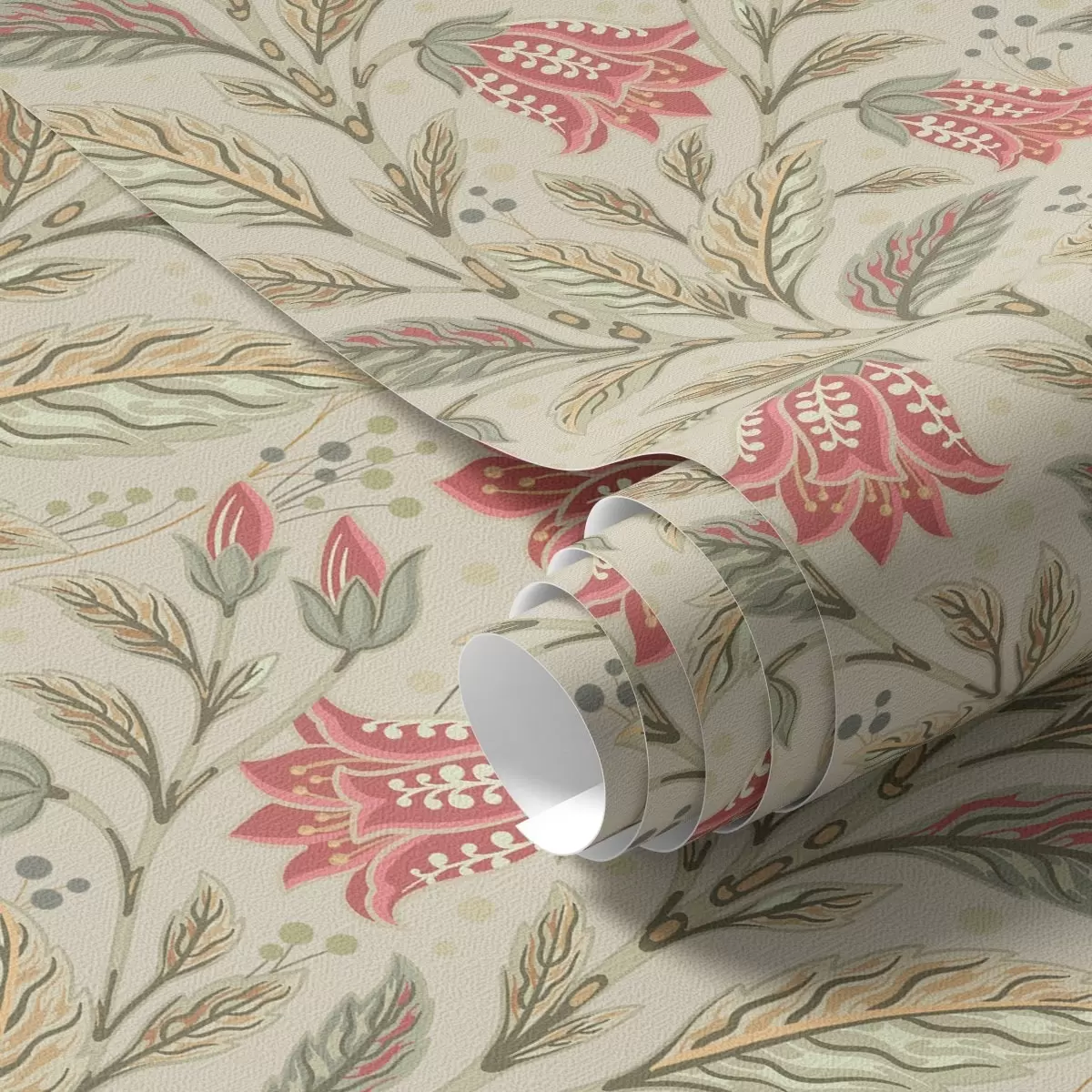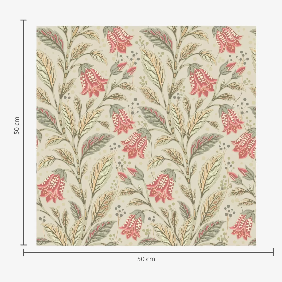Tapetai Maži žiedai su varpeliais rausvai žalios spalvos paletėje Nr. a00760
