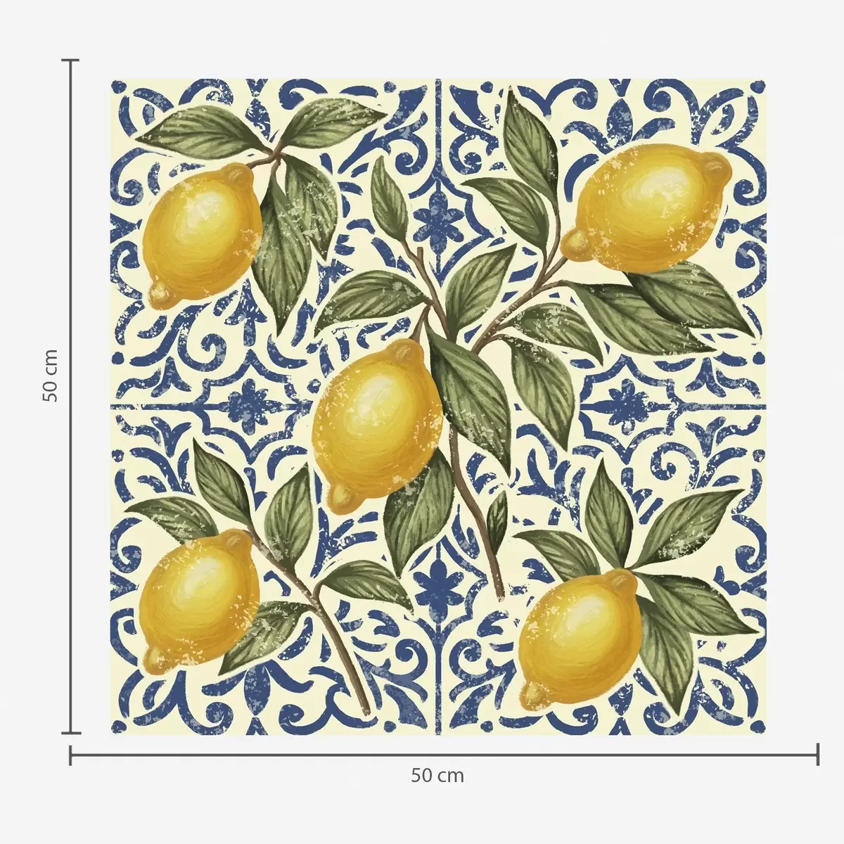 Tapetai Citrinų šakos su mėlynu dekoratyviniu fonu Nr. a00763