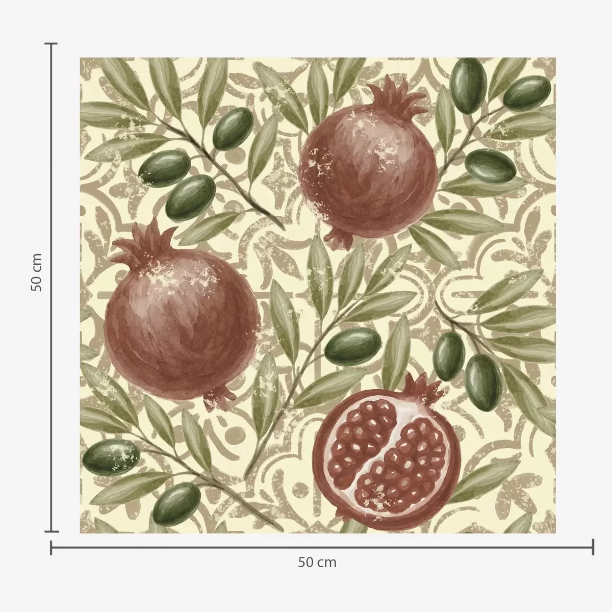 Tapetai Granatų ir alyvmedžių šakos ant dekoratyvinio fono Nr. a00764