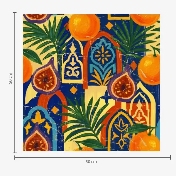Tapetai Ryškiai oranžinės spalvos, palmių lapai ir marokietiškos arkos Nr. a00767