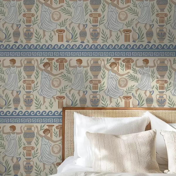 Tapetai Senovės graikų ornamentas su figūromis, vazomis ir kolonomis Nr. a00768