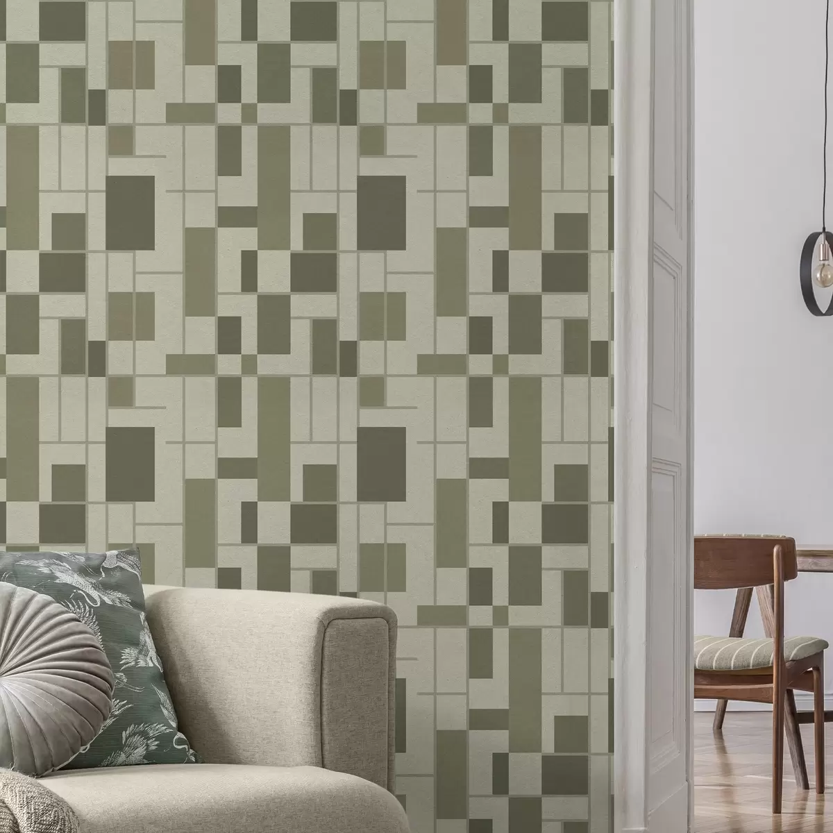Tapetai Geometrinis raštas žalios spalvos atspalviais Nr. a00769