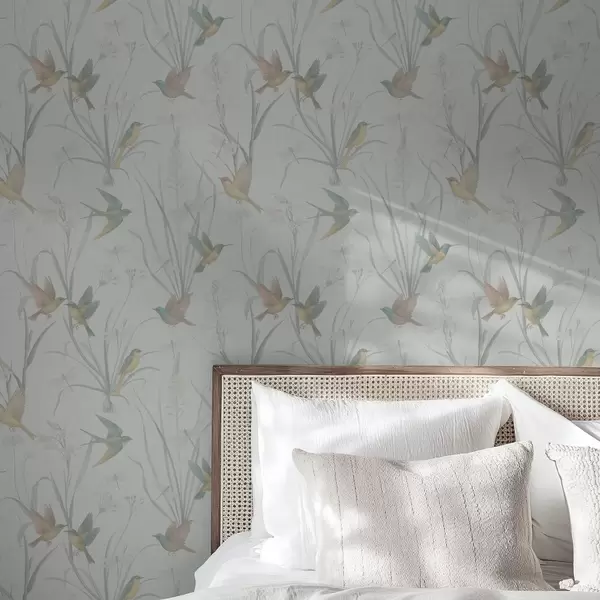 Tapetai Paukščiai tarp pievos žolės ant šviesiai pilkos žemės Nr. a00776v1