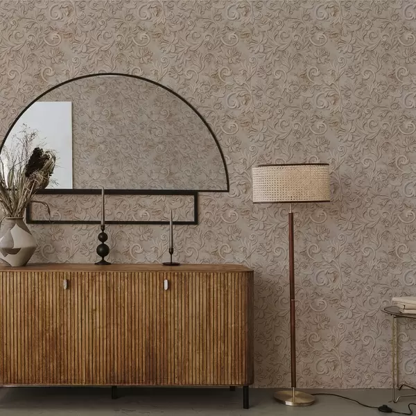 Tapetai Akmens reljefas su gėlių ornamentais, senovinis smėlio spalvos Nr. a00784