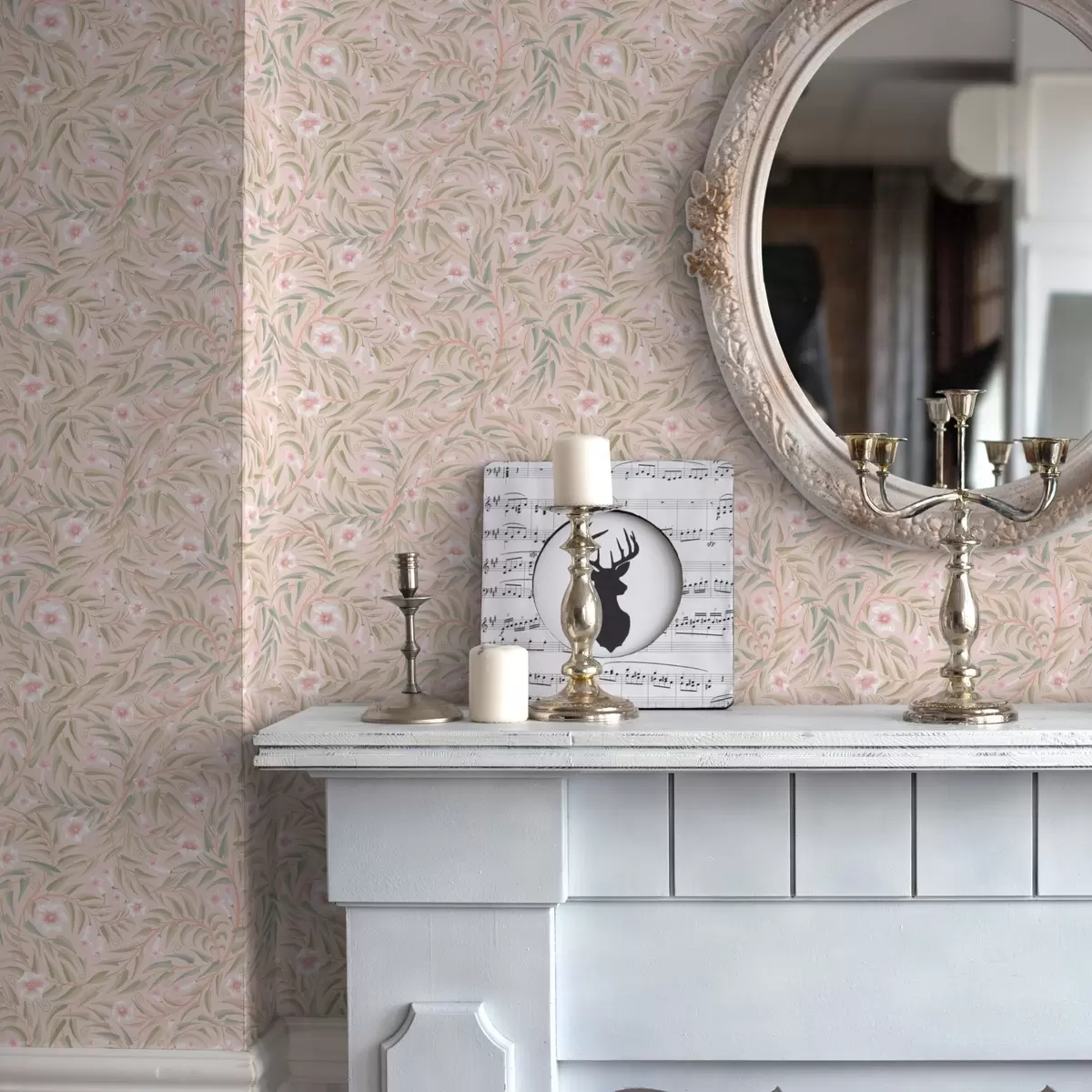 Tapetai Subtilūs rožiniai žiedai ir švelnūs lapai ant pastelinio fono Nr. a00788