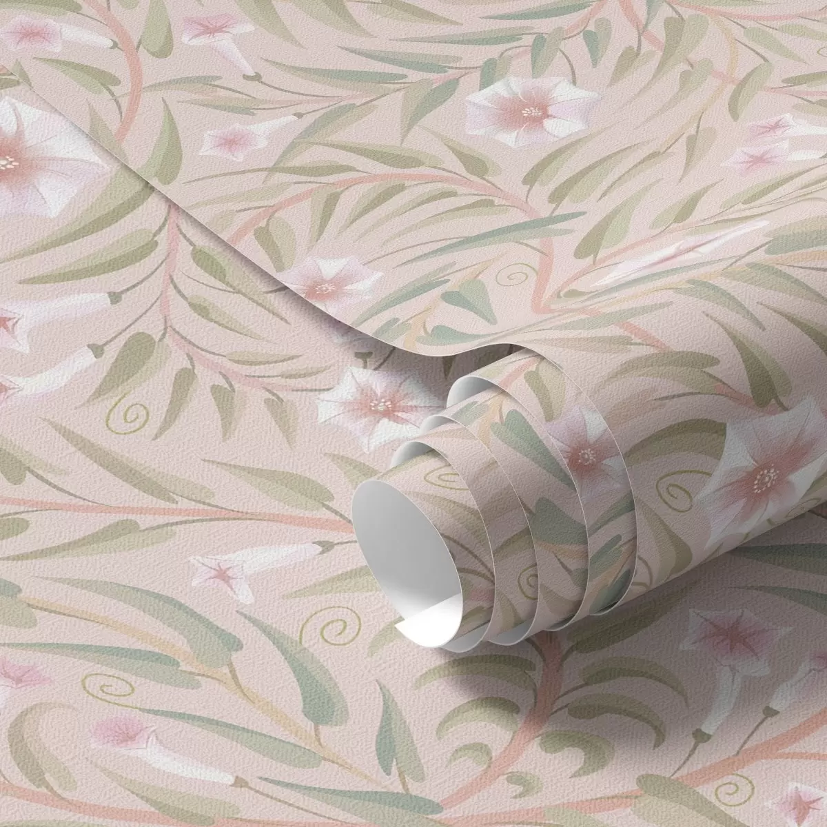 Tapetai Subtilūs rožiniai žiedai ir švelnūs lapai ant pastelinio fono Nr. a00788