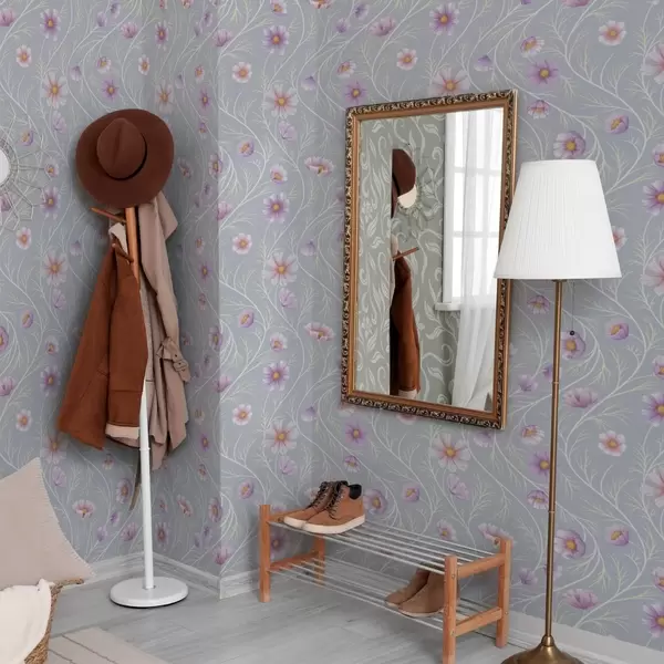 Tapetai Rožiniai kosmosai ir liekni stiebai ant pilko fono Nr. a00791
