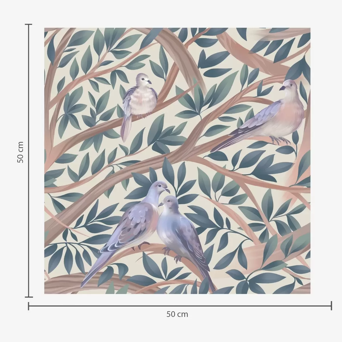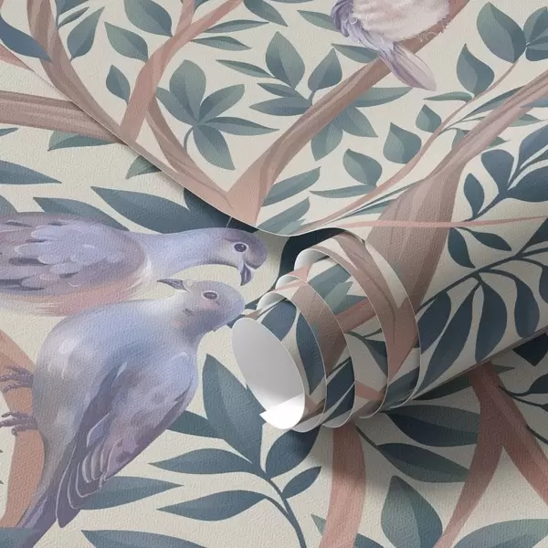 Tapetai Balandžiai tarp šakų ir lapų švelnios pastelinių spalvų paletėje Nr. a00796
