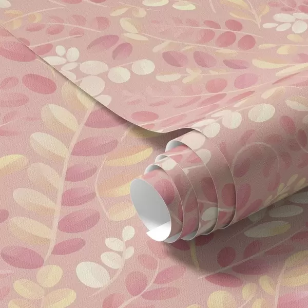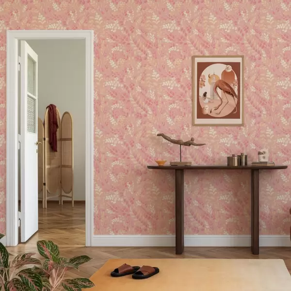 Tapetai Subtilūs rausvai persikų spalvos lapai su švelniu spalvos blizgesiu Nr. a00799