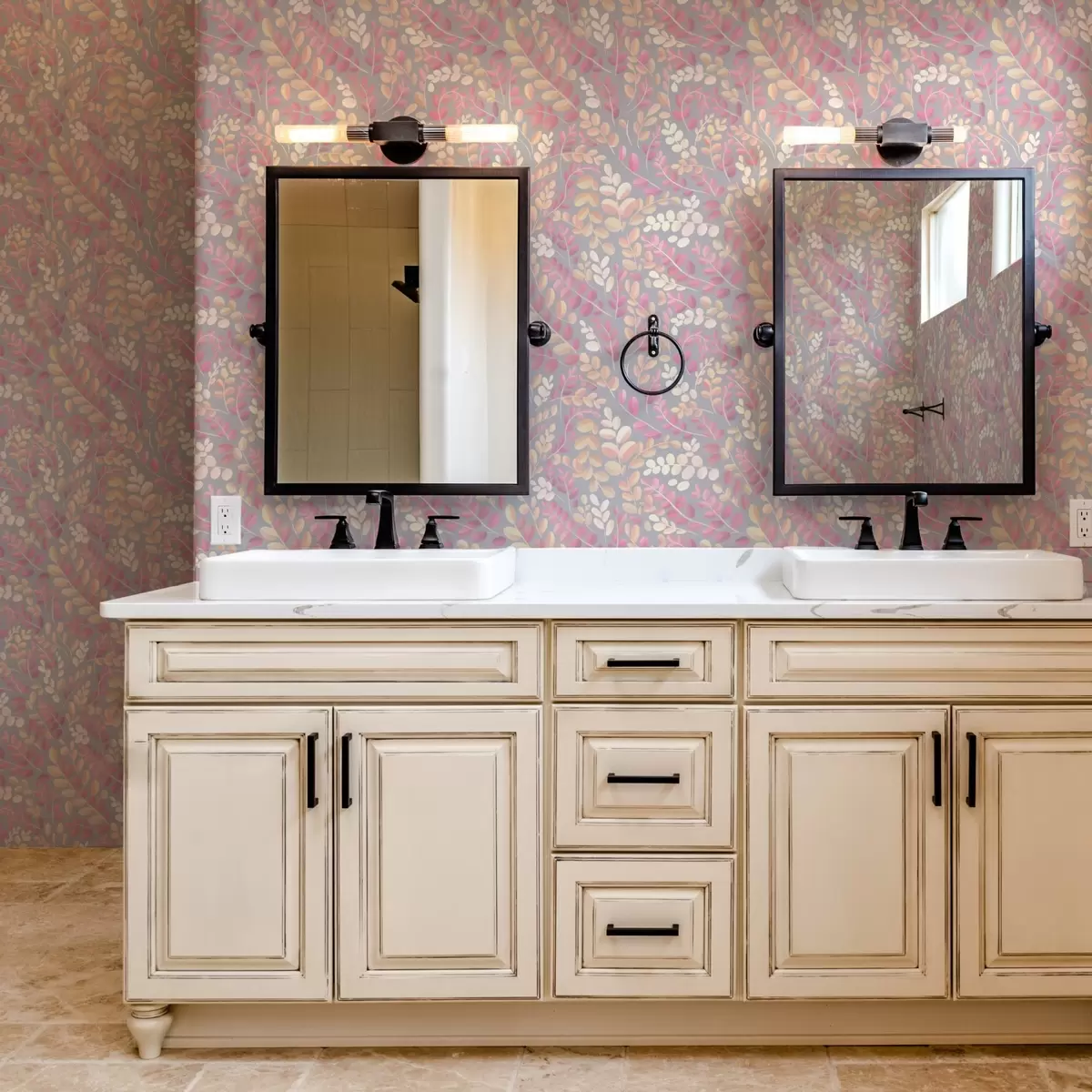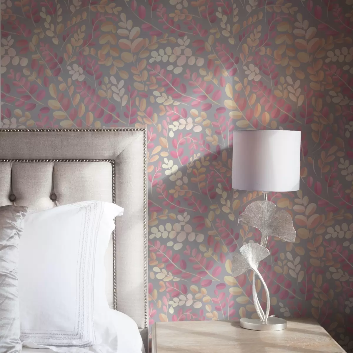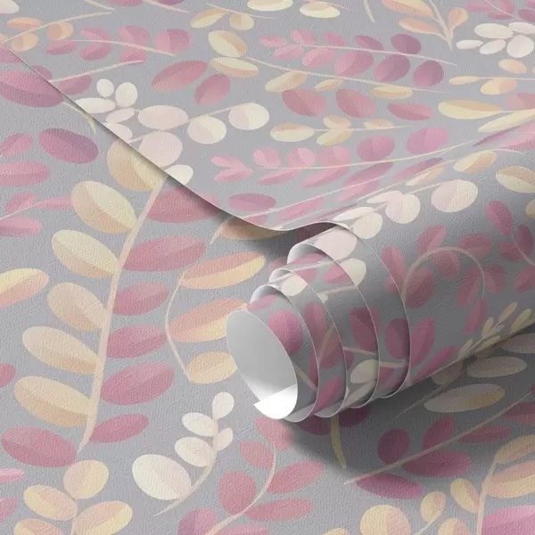 Tapetai Pastelinės šakos su rausvai persikų spalvos lapija ant pilko fono Nr. a00799v1
