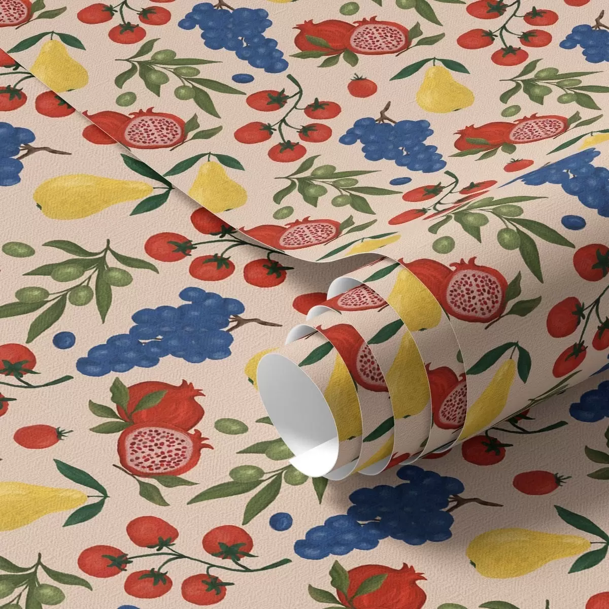 Tapetai Sultingi vaisiai ant šilto smėlio spalvos fono Nr. a00801v1