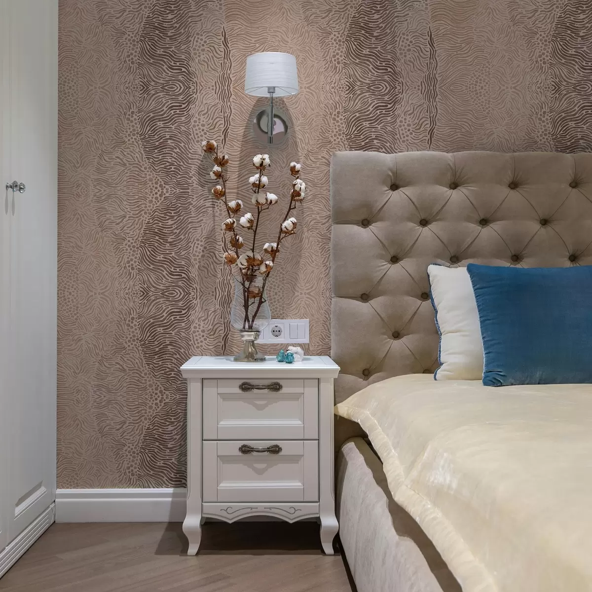 Tapetai Banguotas geometrinis raštas šviesiai smėlio-rudos spalvų paletėje Nr. a00804