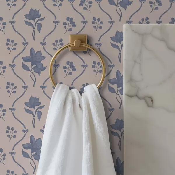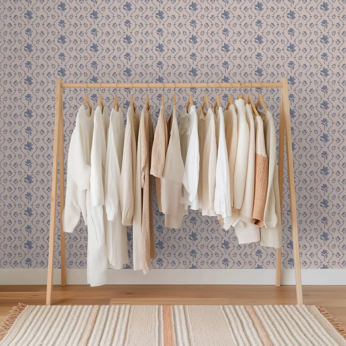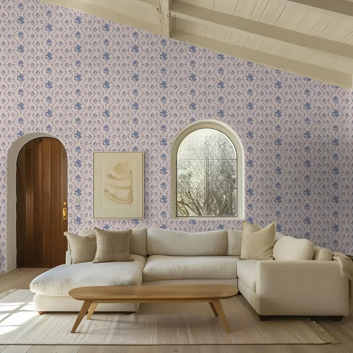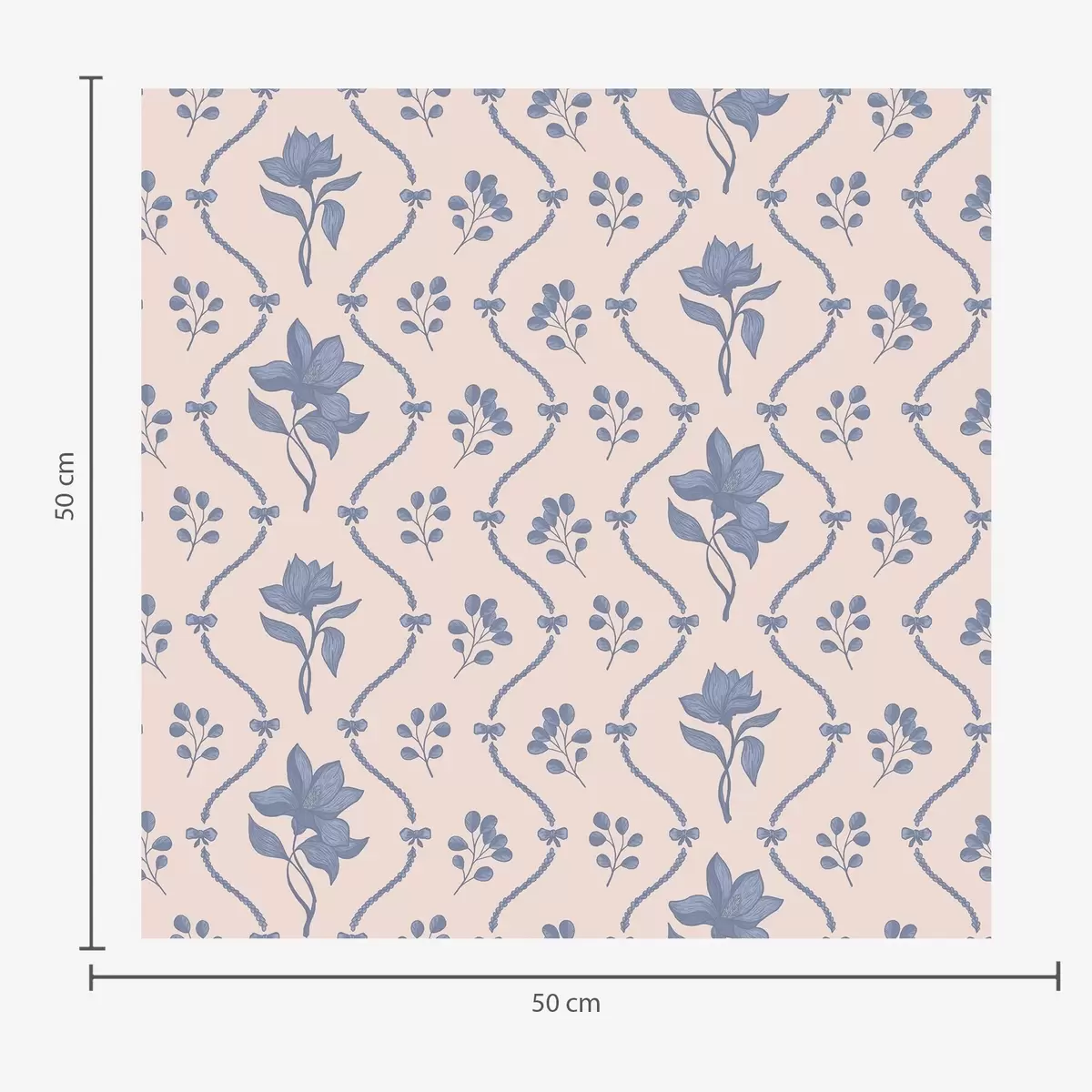 Tapetai Mažos gėlės ir juostelės mėlynų ir rožinių atspalvių Nr. a00808v3
