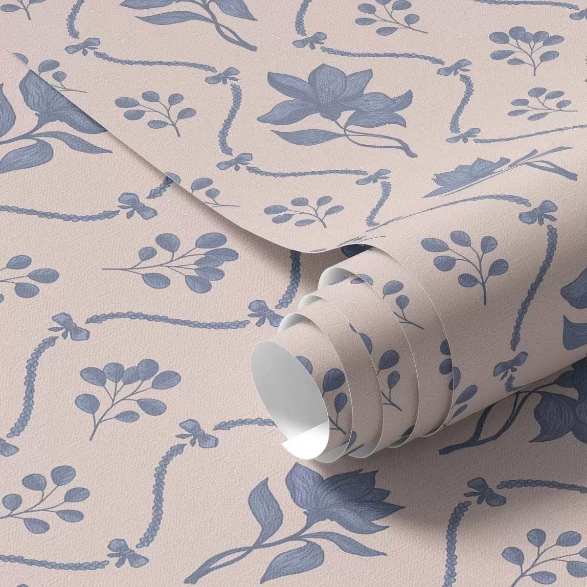 Tapetai Mažos gėlės ir juostelės mėlynų ir rožinių atspalvių Nr. a00808v3